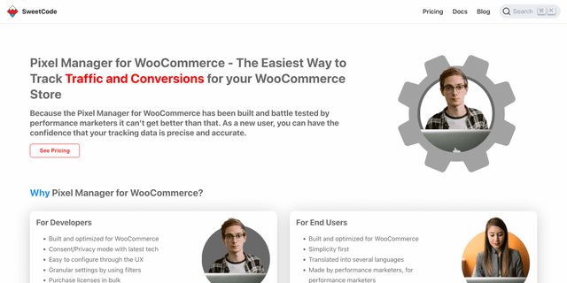 SweetCode company website and documentation for the Pixel Manager for WooCommerce